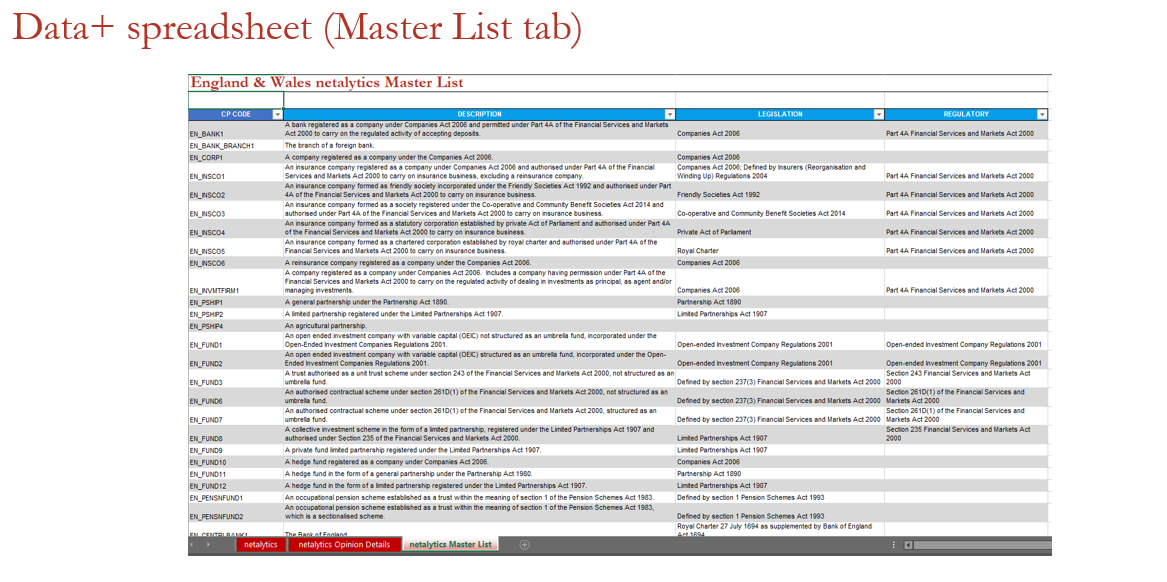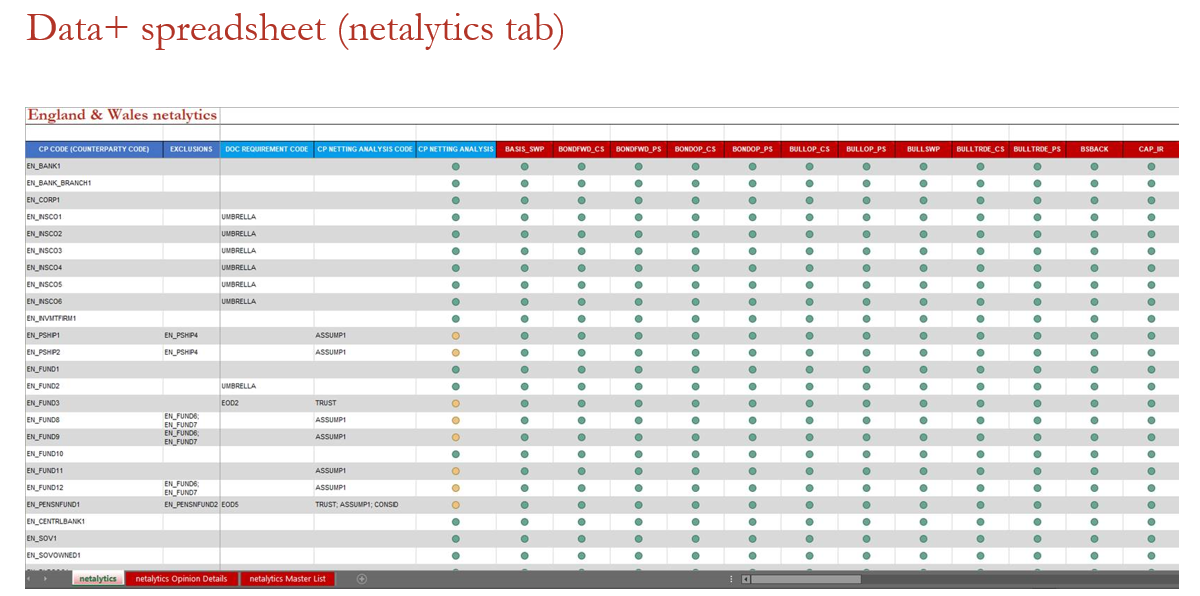 In line with the increasing trend towards digitalisation in the OTC derivatives, repo and securities lending markets, Data+ provides subscribers with a yes/no netting flag in Excel data format for each specific counterparty type and, where applicable, transaction type covered by the ISDA, ICMA and ISLA opinions.