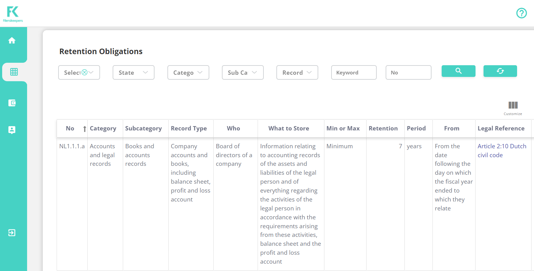 filerskeepers reads all the laws in the world in search of records retention obligations applicable to companies. They currently cover 220+ countries! The retention periods for each country are contained in comprehensive data retention schedules in accordance with various industries and data type, and later integrated into a comprehensive data retention dashboard, and APIs, enriched with all the information companies need to determine their minimum and maximum legal retention periods in the countries relevant to them.