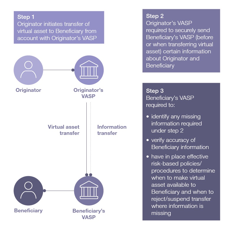 The key components of the Travel Rule are set out in the diagram below.